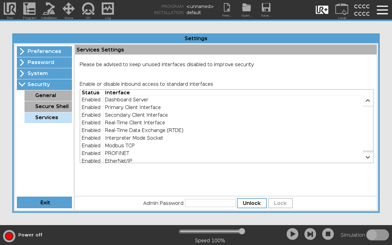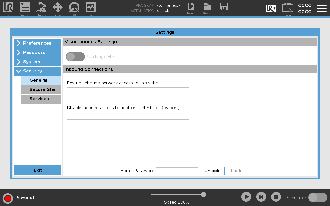 Starting from UR Polyscope 5.14, inbound connections are disabled by default and must be enabled manually. Follow these steps: